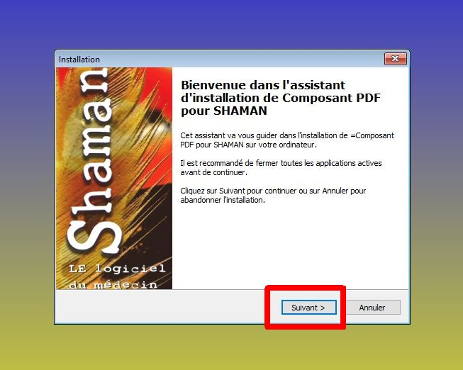 Sélectionnez la ligne "Complément PDF pour SHAMAN" puis cliquez sur "Installez le complément".